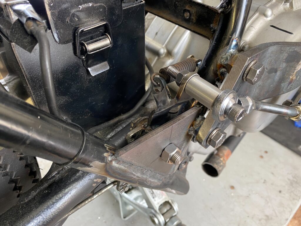 純正のブレーキリンクの位置だと都合が悪かったので、支点の位置を変えてブレーキのリンクを製作しました。