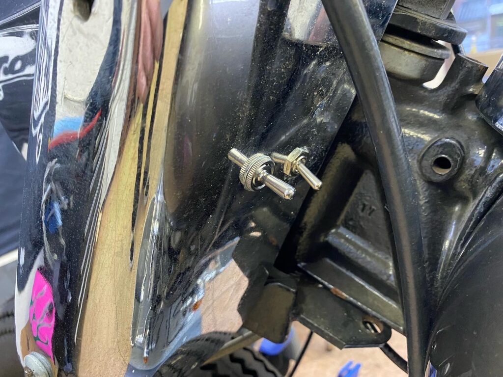 元々ハンドルスイッチについていたヘッドライトのハイロ―とキルスイッチはナセル裏側へ納めました。