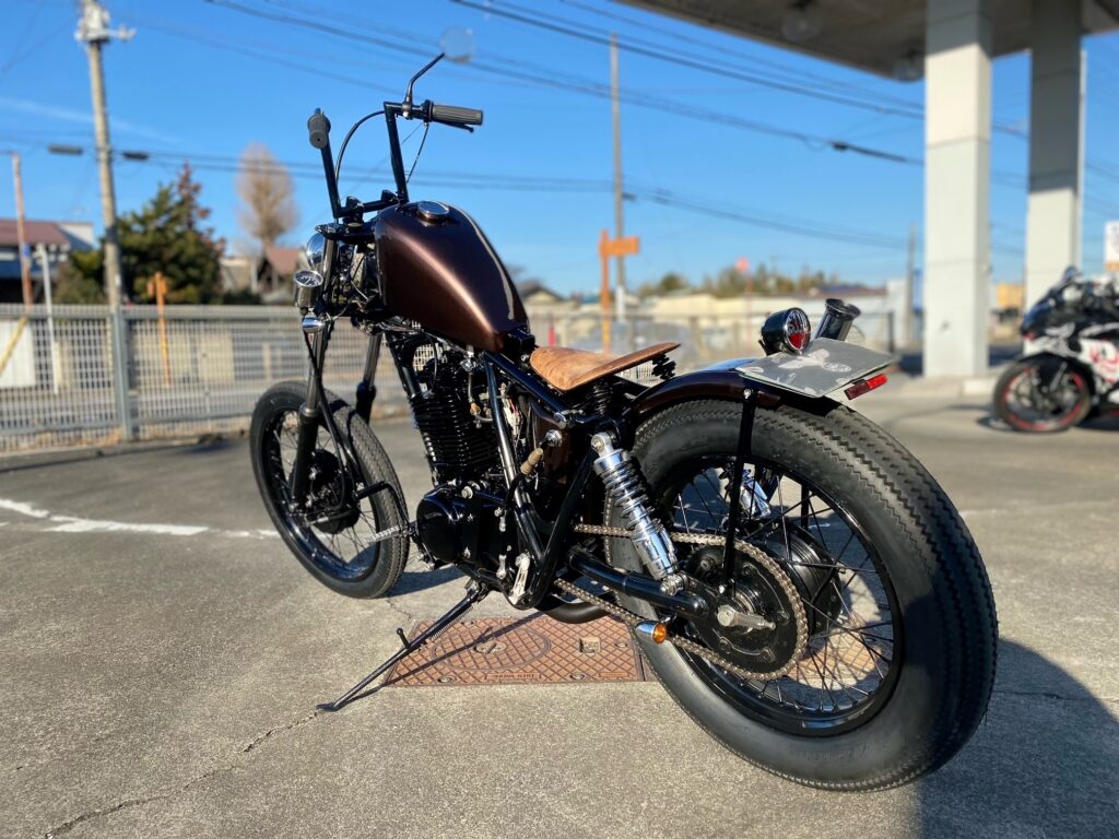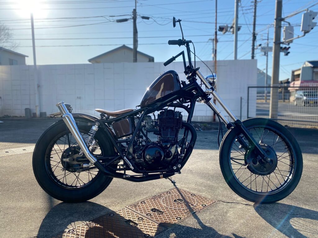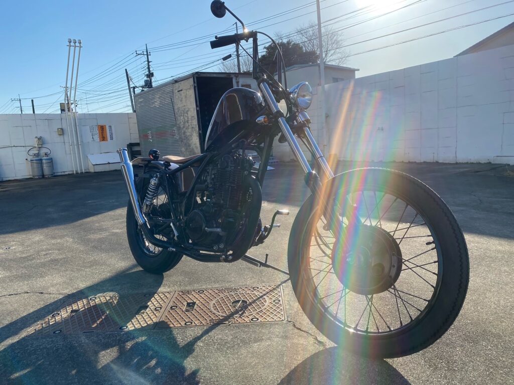 販売車両をベースにフロントホイールを21インチ化、フロントフォークを15センチロングにカスタムしました。 フォワコンのジョッキー仕様なので慣れるまでは大変かもしれませんが、ハンドクラッチとは違う楽しみがありますので、ガンガン乗り回しちゃってください!
